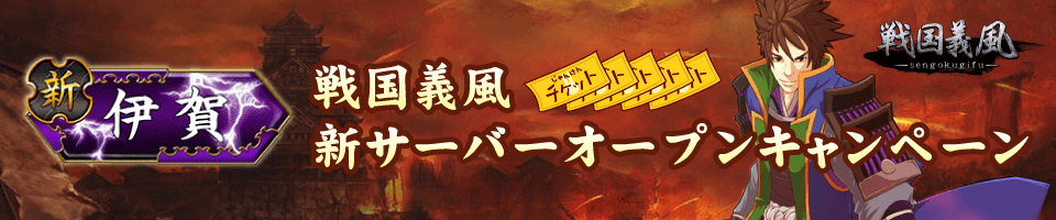 人気ゲーム・戦国義風の新サーバー「伊賀」の開始を記念して、オープンキャンペーンを開催します。