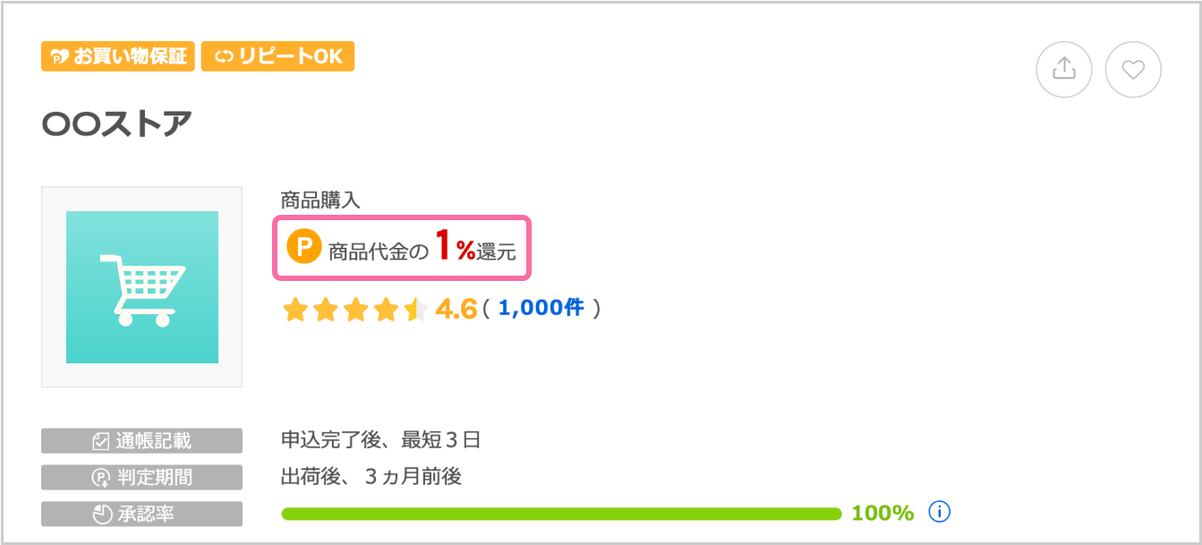 ご購入金額に応じて、一定の割合でポイントが付与される広告です。