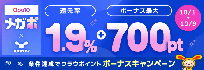 Qoo10メガポがもっとお得に!ワラウ限定ボーナスで最大700ptプレゼント