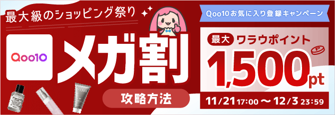 【最大1,500pt】Qoo10 メガ割 ボーナスキャンペーン