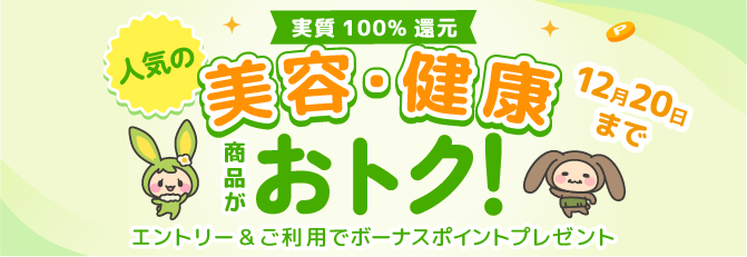 すべての商品が、ボーナスポイントを含めると実質100%以上還元に。 このおトクな機会に、美容・健康習慣を始めてみませんか?