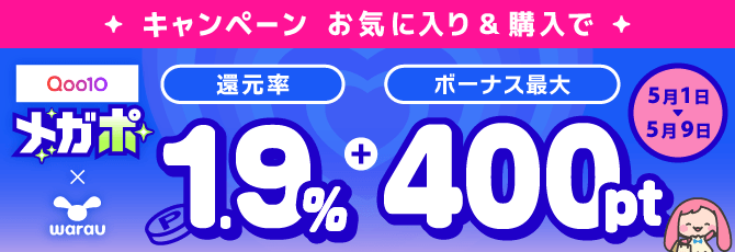 Qoo10メガポ開催!お気に入り&購入で最大400ptキャンペーン